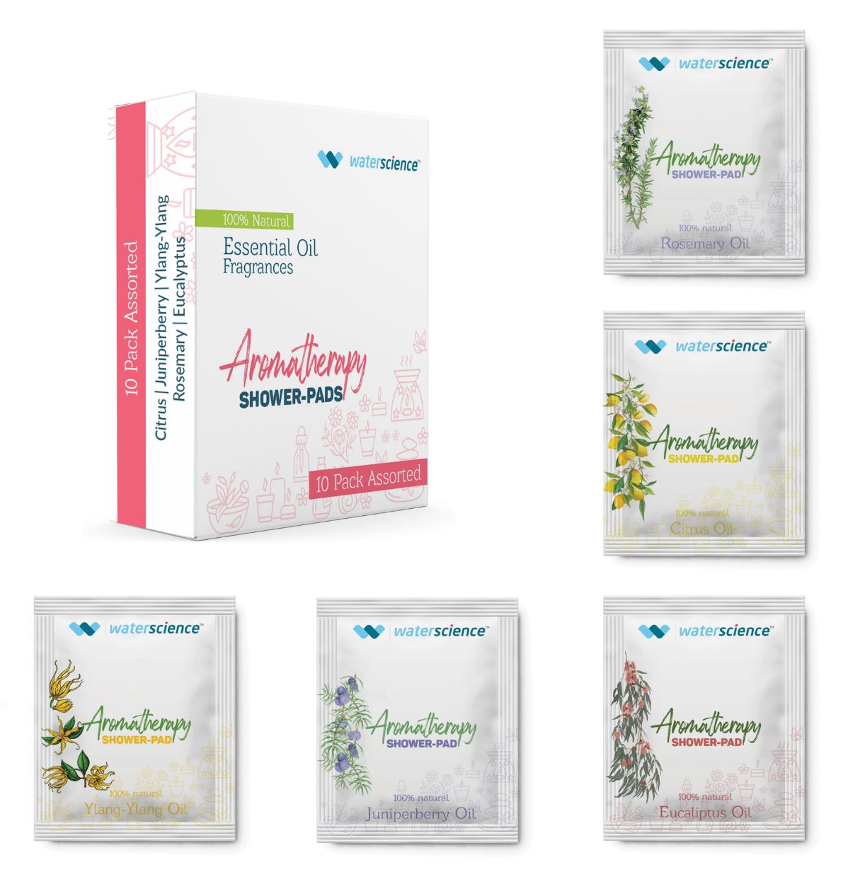 - Aromatic essential oil pads with 5 refreshing fragrances: Eucalyptus, Ylang Ylang, Rosemary, Citrus & Juniperberry