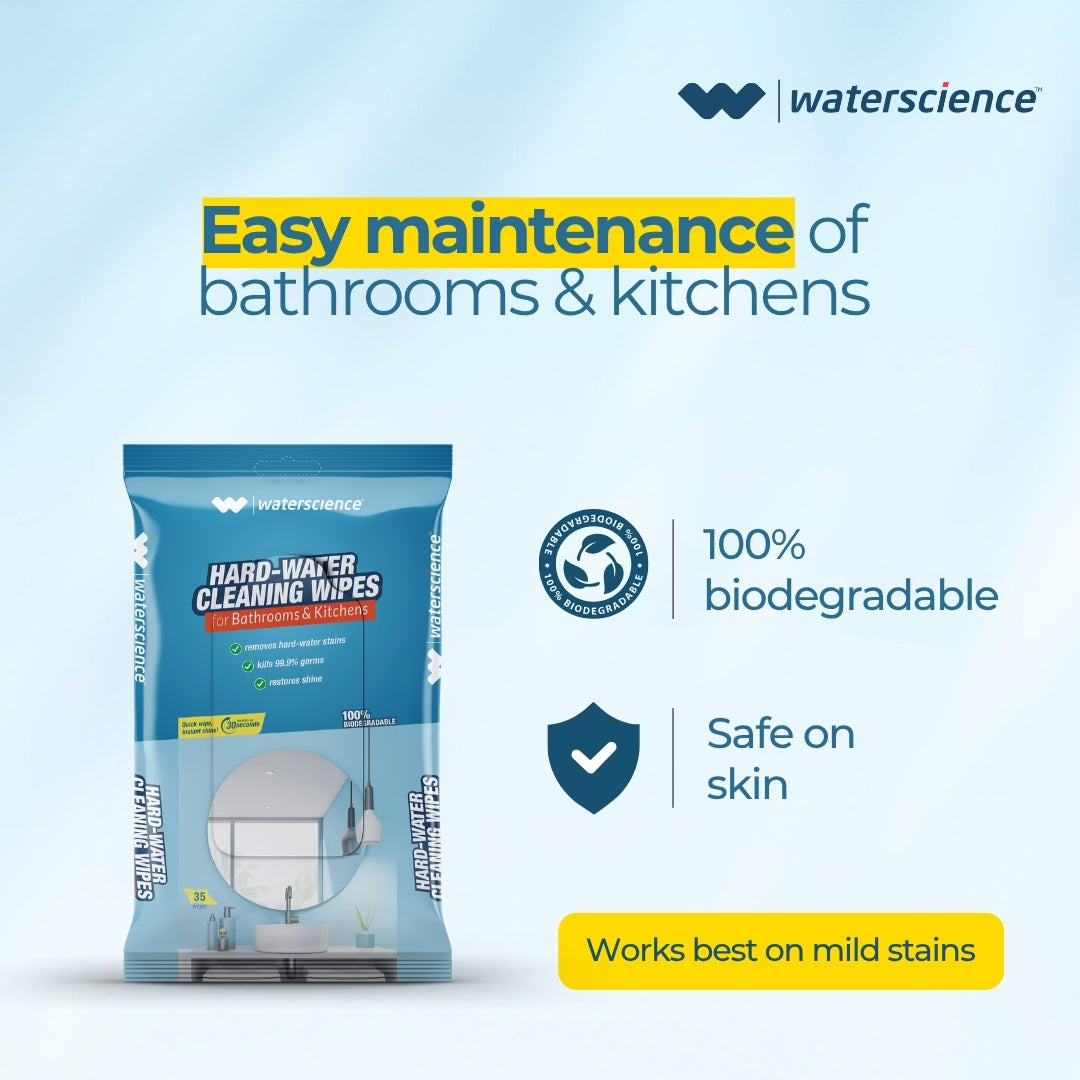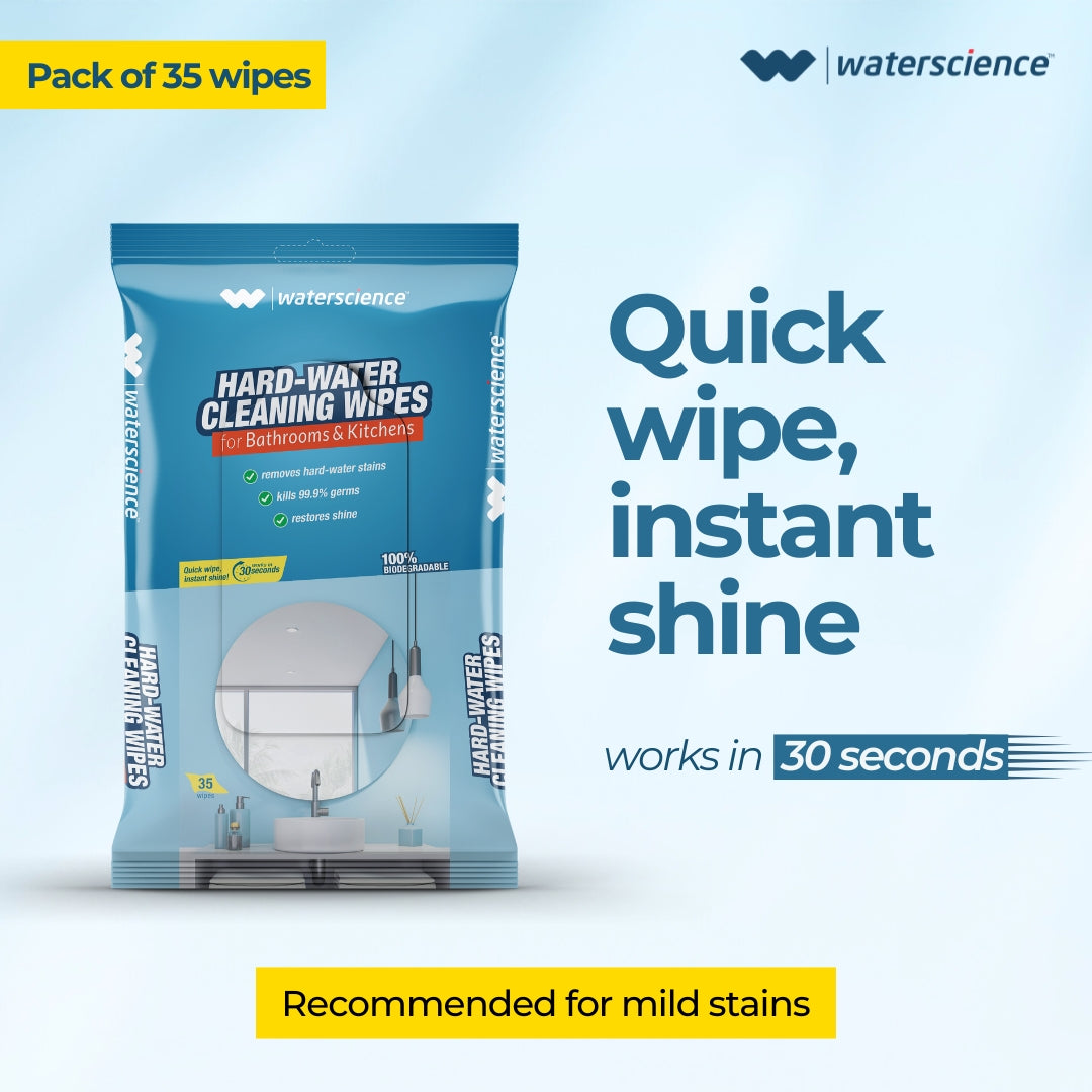 Quick wipe, instant shine with WaterScience Hard water cleaning wipes! Get yours now!