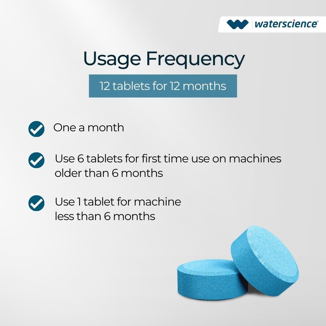 WaterScience washing machine filter safeguards your machine and clothes from hard water, dust, and rust, enhancing machine efficiency and improving the overall wash quality. The pack of 12 descaler tablets provides year-long protection by helping remove limescale and dirt. It is recommended to use the tablets before installing the filter.